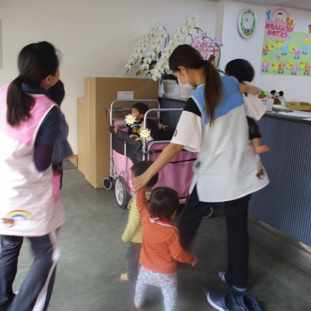 みんなビックリしながらも、保育士に誘導されて保育室の中央に。
