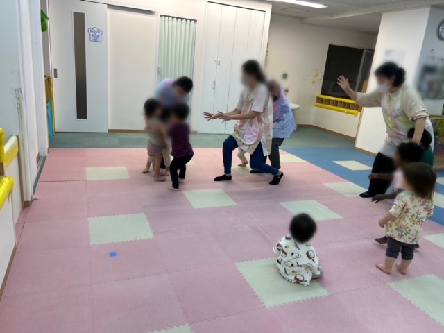 お散歩の時、2歳児は手を繋いで歩くので、このように楽しく練習をしていくことは大切だなと思っています。