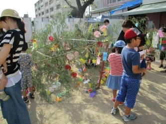 先日、連携施設であるいちょう保育園で行われた夕涼み七夕会に