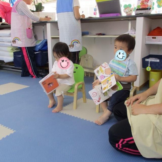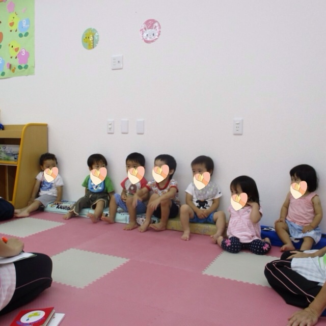 みんなで並んで椅子に座り、保育士とやりとりできる様子をみて
