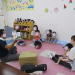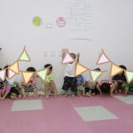 さて、クローバーひまわり保育園のシューズボックススペースの壁面には、毎月園児たちの制作を展示し、お客様やお迎えに来る保護者を出迎えています。
