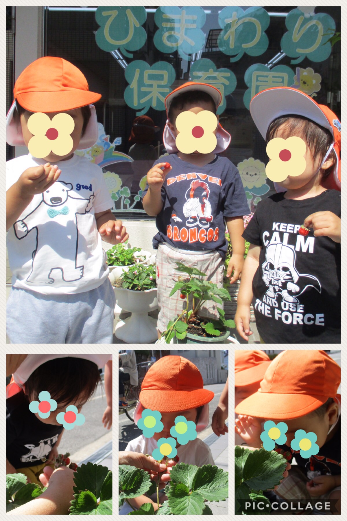 さて、クローバーひまわり保育園のシューズボックススペースの壁面には、毎月園児たちの制作を展示し、お客様やお迎えに来る保護者を出迎えています。