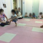 運動遊び 2020年9月2日HP, 保育室, 園内紹介保育, 保育園, 園児, 室内遊び, 小規模, 楽しい, 運動遊びclover-community 床から少し上げた棒をジャンプで跳び越えます。 真剣な表情で… 着地の瞬間、満面の笑顔になりました。